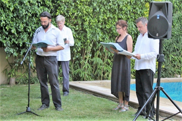 Here in Cyprus we celebrated Bloomsday at the Irish Residence with an event organised by the Irish Embassy which saw members of the Cyprus Ireland Association and others from both communities come together to celebrate this great literary event on the 20th of June (a few days late for practical reasons). There was a display on the life and times of James Joyce and selected readings from Ulysses. It was a beautiful balmy night perfect to relax with a glass of wine while being treated to such a display of eloquence by the readers on the night.